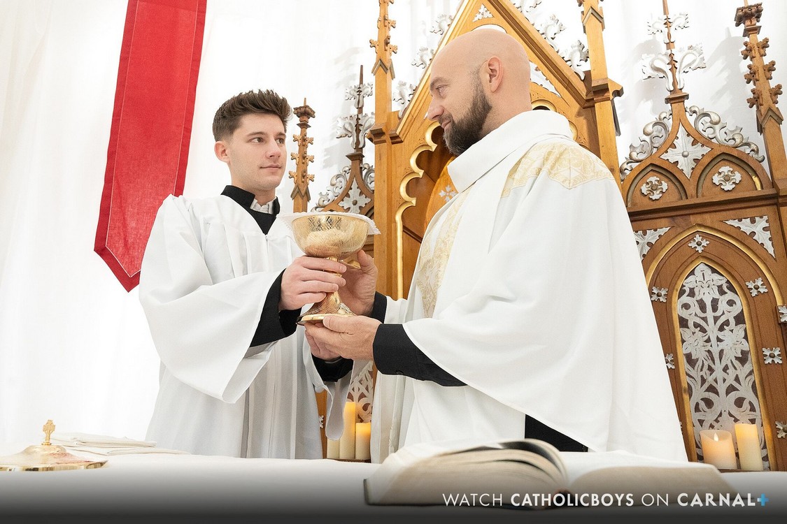 This is not the first time Altar boy Dex is summoned to the sanctuary to assist with dressing the altar and serving as a chalice for a priest’s offering of sacred seed. It’s not even the first time Dex has served Father Snow. It is, however, the first time the well hung man has shoved his huge cock into the boy’s tight hole without him being fucked by other men first. Dex hadn’t fully appreciated how big Father Snow’s cock is until he has to take it without any warm up beside the hot DILF’s enthusiastic ass eating. Dex is up to the challenge, though. Once he’s been stretched out, the horny altar boy finds himself pushing back, riding the handsome priest. Father Snow is more than willing to let the young man please himself, before he turns the cute boy on his back where he can spread the altar boy’s sleek legs wide apart as he pummels the boy’s tight hole hard before filling him up with his hot, sticky, sacred seed.