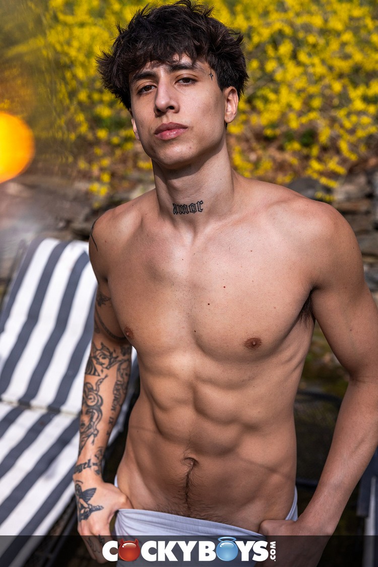 Warm spring weather makes Angel Elias and Flynn Fenix happy and horny, especially Flynn who is more direct in going from kissing and sensual body play with Anel to sucking and deep-throating him. Angel definitely likes Flynn’s style because it revs up his verbal dom side of getting what HE wants: eating out and sucking Flynn from behind and plowing his hole. Flynn pants and moans as Angel manhandles him and drills him and then fucks him in multiple ways to show he owns Flynn’s hole. Flynn is all in for the ass pounding and rides Angel when they hit the bed. Angel soon flips him on his back and pounds Flynn, fucks a load out of him and keeps going until he breeds Flynn and kisses him. That’s how you celebrate spring!