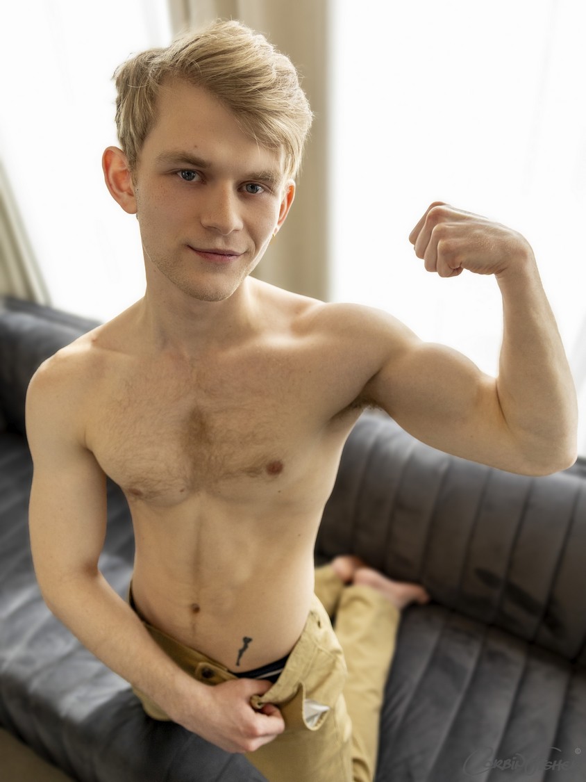 Knox closely follows and loves to watch mixed martial arts, wrestled in school, did karate, and spends a lot of time watching martial arts content and competition – but don’t worry! This handsome young stud is both a lover and a fighter! As if being so athletic and competitive wasn’t enough, Knox is also a chef who loves to cook in his free time, and has cooked professionally. Yes… all of us were already swooning as soon as we met this sexy stud and only found ourselves getting more and more smitten as he shared his passion for cooking with us, and his passion for acting and music! You can tell Knox is a total natural on camera, just as he’d be on stage. He’s confident, personable, expressive, and admits he quite enjoys having an audience. While he’s used to having an audience on stage, this is the first time he’s ever had an audience doing something like this but took to it so easily and naturally and absolutely commands the room and cameras! Simply put, Knox is a stud. As he strips down, we see that his looks and personality are by no means his only impressive assets; thankfully he was eager to start pulling his clothes off because his pants were already straining against the monster he’s wielding between his legs and I don’t think the seams or fabric would have lasted much longer! Knox is going to make you want and need him, and he knows that. He knows how to give you a look that’ll make you blush, and knows how to complement it with a smile and a smirk that’ll make your knees weak. I don’t doubt Knox is used to getting what he wants, and sure as heck hope he wants to show off for his audience here at CF again and again!