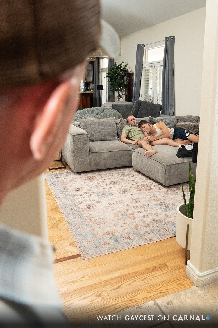 I wasn’t able to pry my eyes off of what I saw happening before me, I was already getting hot and bothered from watching Mr. Adrii and his boy, but to be able to see him with my boy did something totally different for me. Watching Zander team-up with another lad around his age to work together to service Mr. Adrii’s rock hard uncut cock got my own DILF dick throbbing still trapped in my pants. To not only see, but practically taste the powerful lust that washed over Mr. Adrii truly changed me as a man, wanting to further explore this secretive family bonding activity. My boy grinned that sexy smirk of his, took me by the hand and pulled me over to the other side of the sofa where Hugo had resumed servicing his father. With both me and my grandson with front row seats to the show that Mr. Adrii and his boy were putting on for us, the moment Mr. Adrii dropped Hugo’s shorts to begin tongue-fucking the groaning twink, I was fully erect and felt that Zander was too! With our boys arching their backs beneath us, the DILFs became so enthralled in our cocks gliding effortlessly deep into our bottom’s holes that we almost forgot neither of us was alone with our boys. Until Mr. Adrii and I locked eyes as we all caught our breath and took advantage of the scene and swapped our boys’ places, that’s two for the price of one!