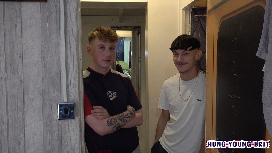 Our Taylor, and Nathan the fit Irish rugby lad, are proper horned up after Taylor yanks Nathan from the park to the house. They give cameraman Jamie a hand dragging a mattress into the middle room, but it doesn’t take long to turn filthy. Taylor tastes Nathan’s massive Irish cock, before Nathan takes Taylor’s pulsing chav meat down his throat.