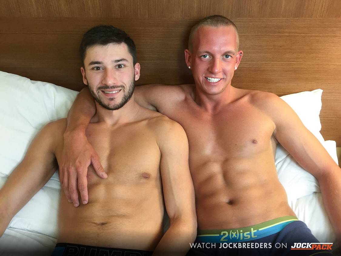 Scott DeMarco breaks the makeout session bringing his face closer to the tall hung top Tanner Wade’s big cock to wrap his lips around it. The pierced blond returns the favor and devours Scott’s erection before watching the bottom mount his own hard dick. The tall hung top’s thrusts get harder and deeper the longer the two remain in contact, climaxing from gay sex with a breeding filled with cum.