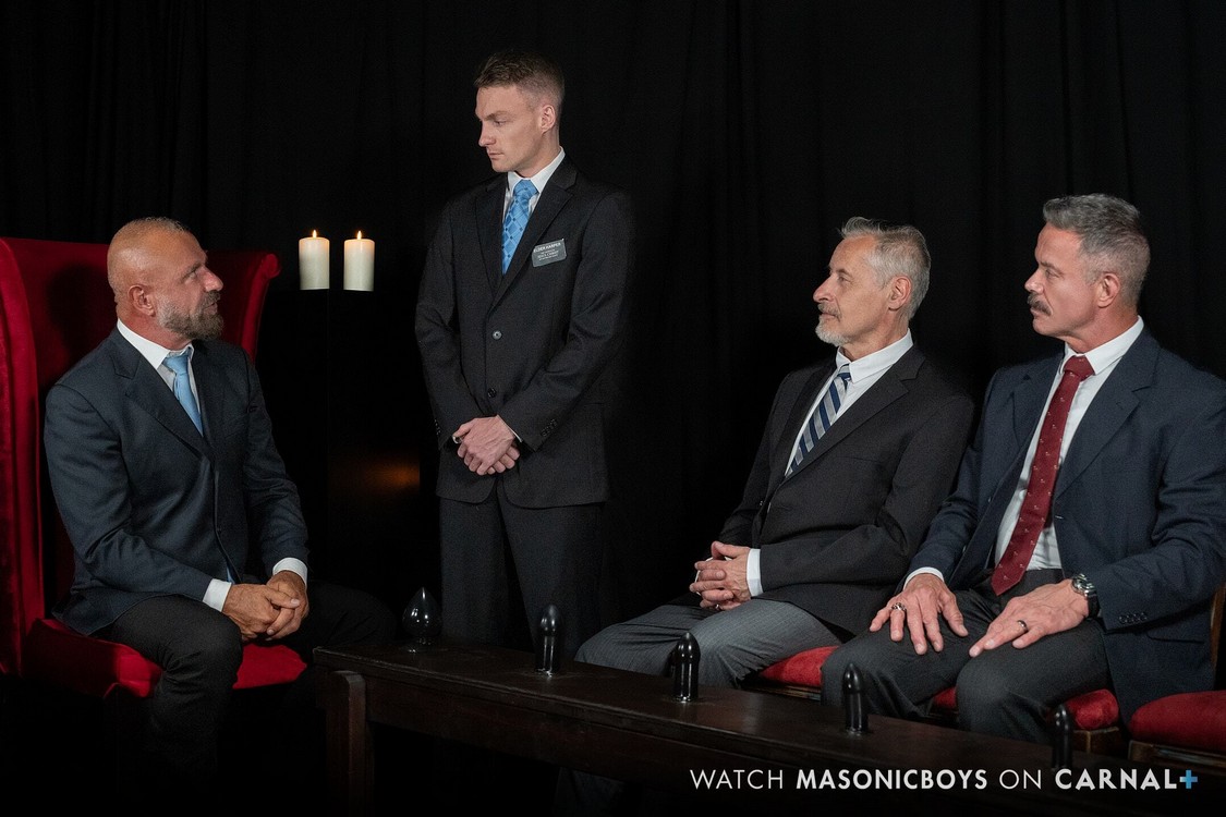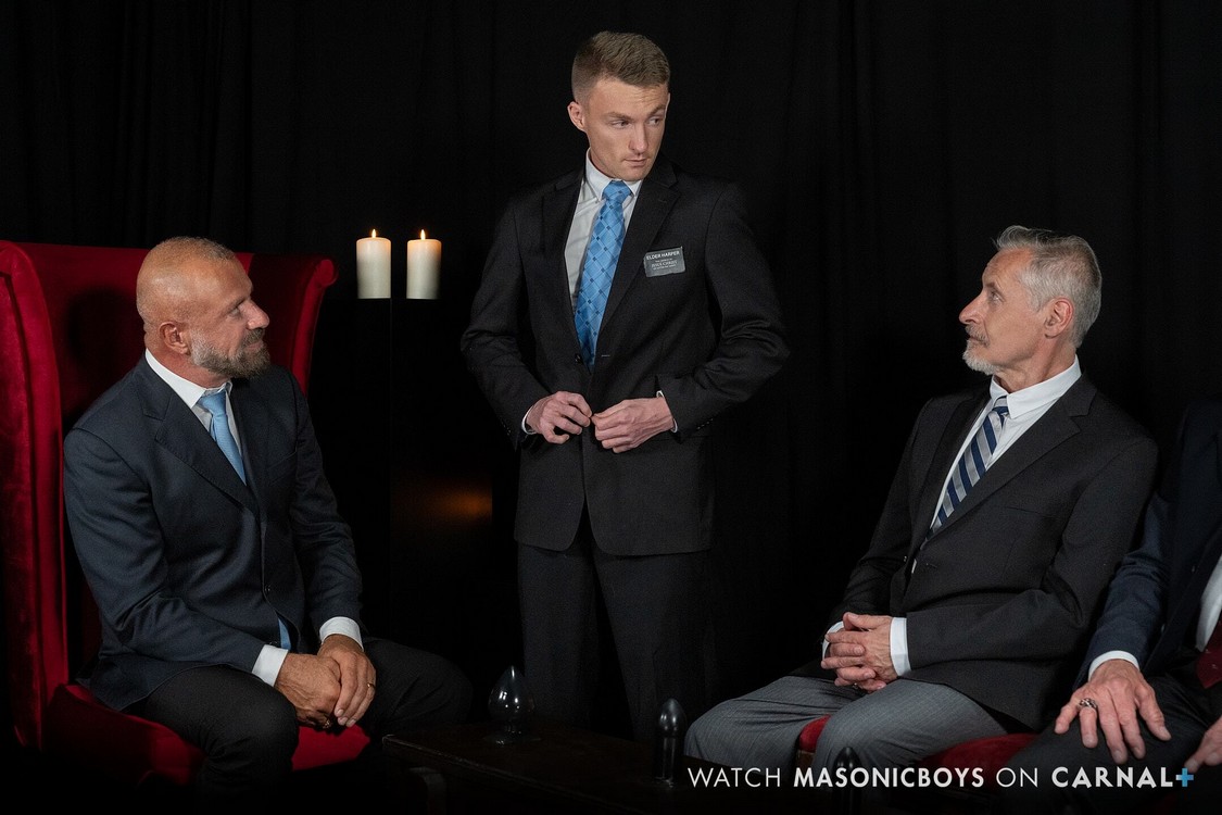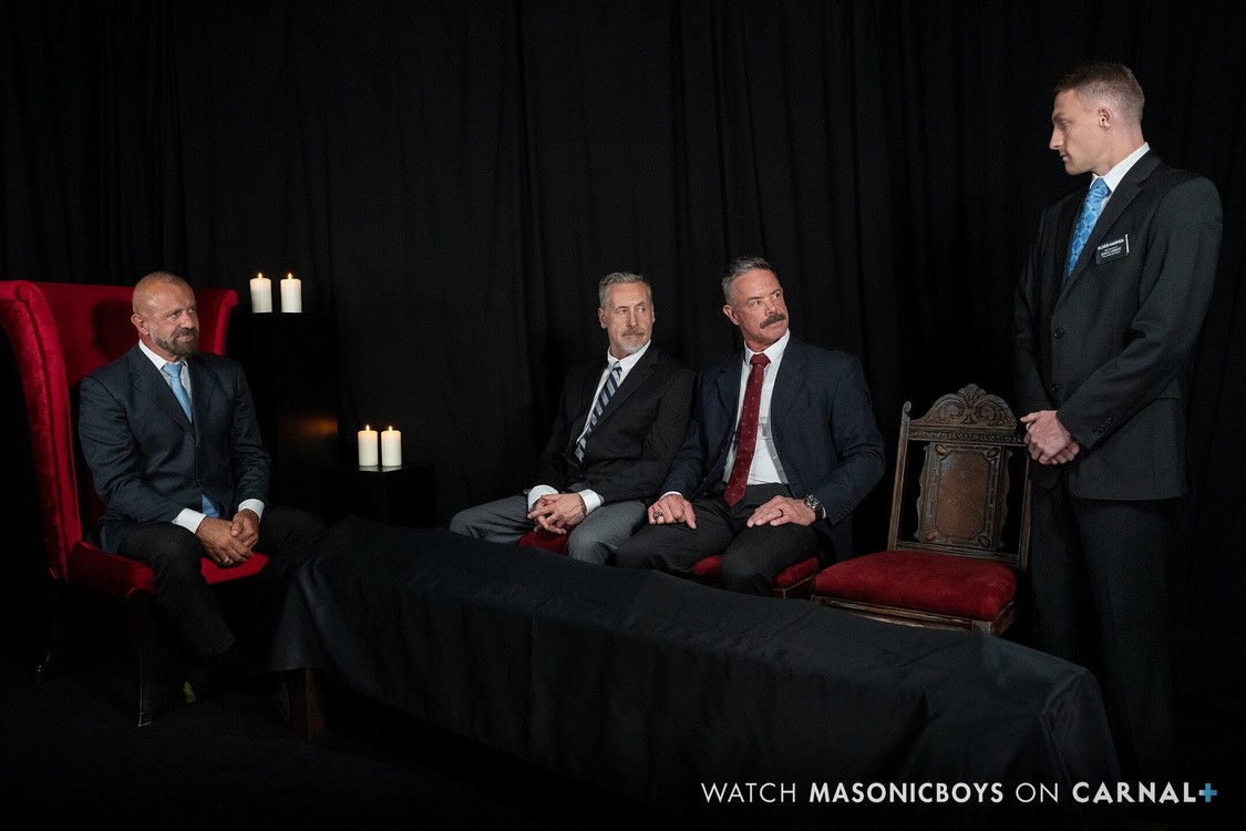 Apprentice Harper attends his atonement ritual led by Master Kamp with Patriarch Smith and Master Scott, subjecting him to sit on progressively larger butt plugs until he could not take the last and largest one, learning there would be consequences. After stretching his hole to the max, he was subjected to a super hard fucking by hung top Master Stryker.