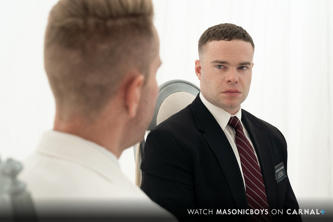 A fearful apprentice McNeill is interviewed by Master Jake regarding his gay desires. Using bondage, oil and a dildo, Master Jake proves his inner feelings by stroking Marcus’ large cock while probing his hole over and over until he cums hard.