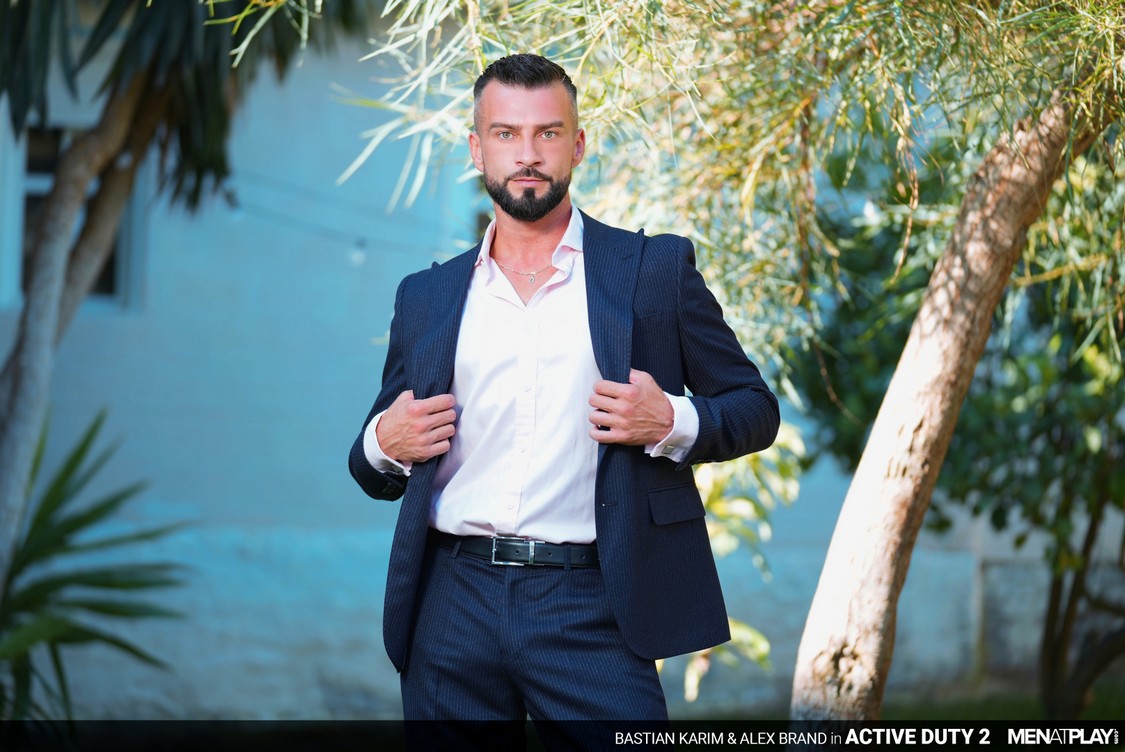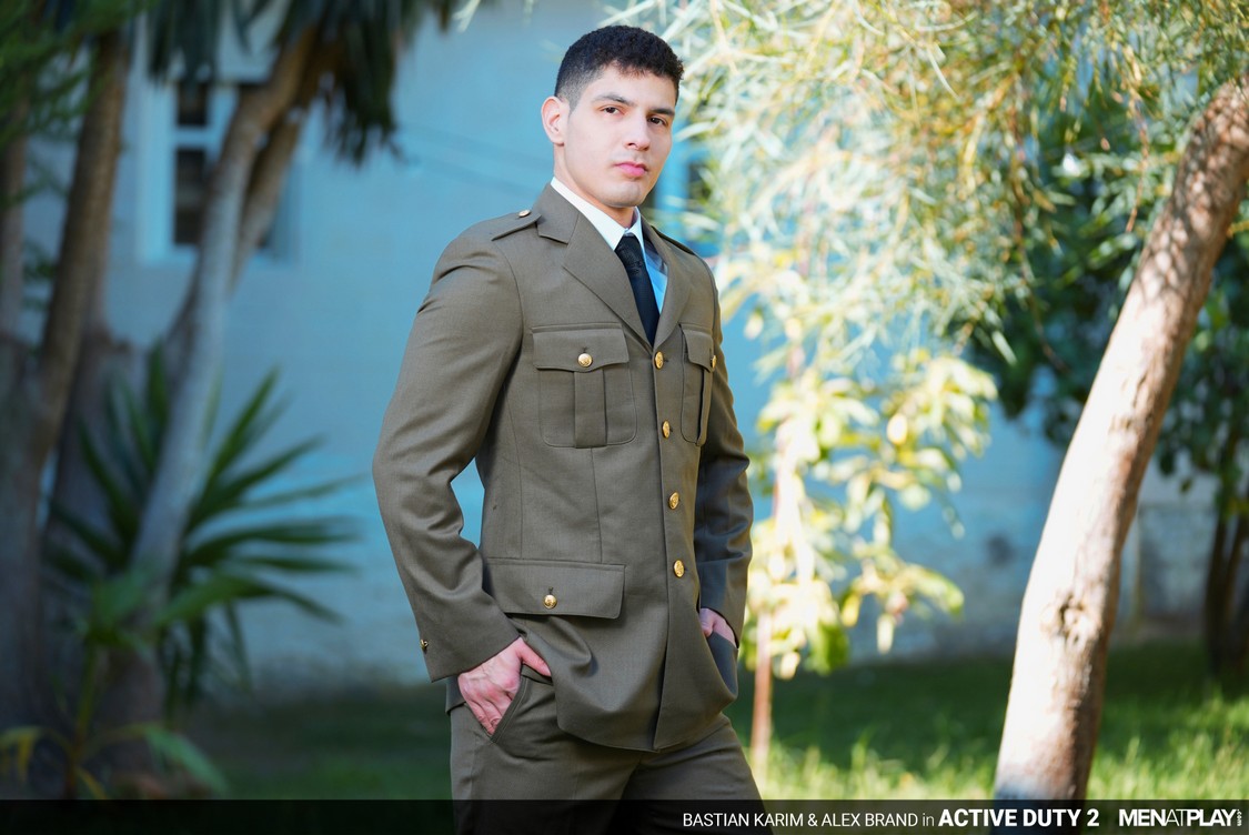 Private First Class Bastian Karim is on a weekend pass during the Veterans Day holiday and makes a surprise visit. As he pulls up into the garage, he phones his step-dad, who lets Bastian know that his favorite step-brother (Alex Brand) is home alone for a few hours. When Bastian finds Alex in the back smoking a square, he rushes to him and says, “Surprise, asshole… You gonna keep staring or kiss me?” The two step-brothers have missed each other since Bastian is on active duty and away for months at a time. What a perfect time to reconnect and play! No Mission Too Difficult, No Sacrifice Too Great, Brotherly Duties First. To those in uniform serving today and those who have served in the past, we thank you for your commitment.