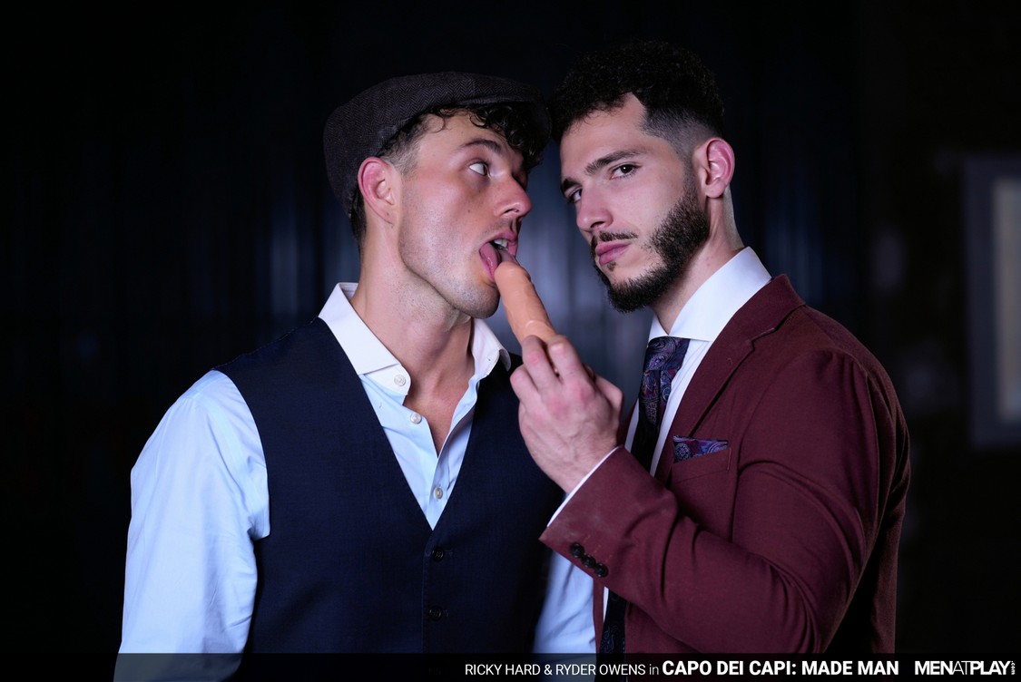 MrDeepVoice has agreed with his trusted capo, Ricky “The Azor” Hard, to make cugine (young soldier) Ryder “Babyface” Owens, a friend of ours, a full-fledged made man. But before Ryder can earn his place in the inner circle, he must undergo the familia’s sacred initiation ritual. This rite of passage demands more than courage — it requires unwavering loyalty. Ryder must also take the Omertà, the solemn oath of silence and allegiance that binds every member to the code of the DeepVoice familia. The ritual transforms a mere mortal into a ‘man of honor’ by taking it and giving it like a real man! First, Capo Ricky gets his Portuguese cock sucked by Ryder, who then takes it deep in his virgin hole. Once made, Ryder flips around and has his turn at Ricky. Eager to poke his former captain, Ryder rips Ricky’s pants and boxers – revealing a round ass waiting to be eaten and fucked. After a hot flip-flop fuck session, both studs release their loads. Ryder “Babyface” Owens is not just some guy anymore — he’s a Made Man!