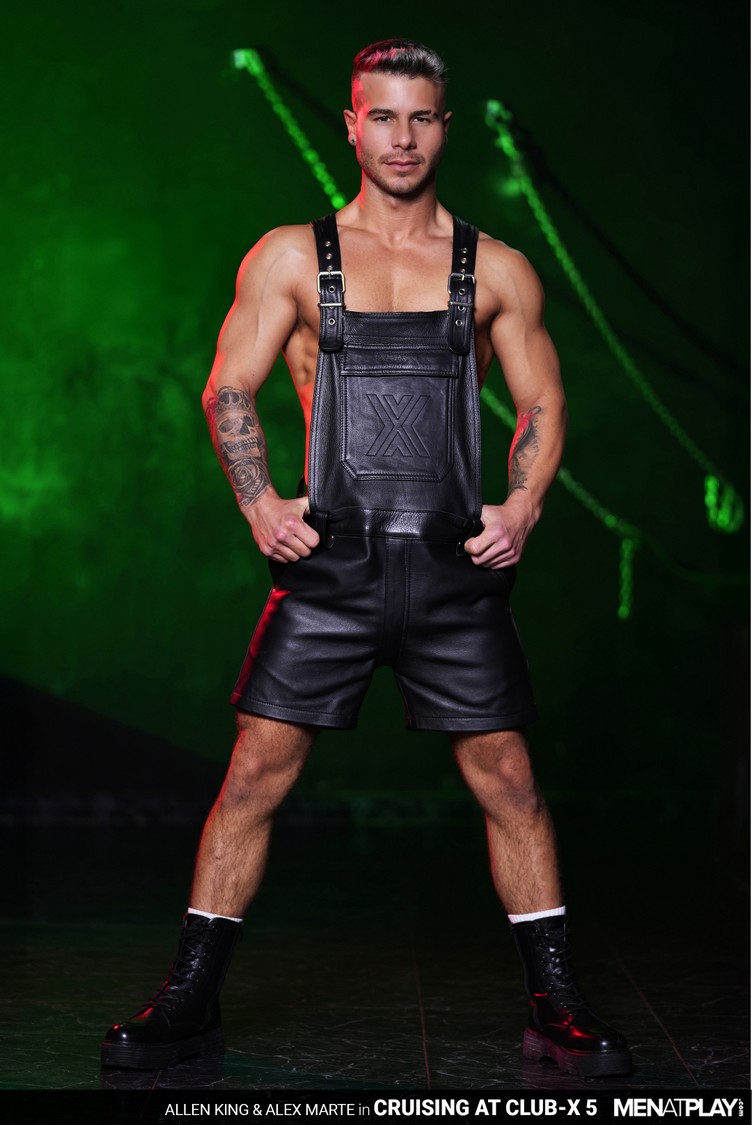 In 2010, Italian stud Alex Marte made his porn debut on Menatplay, and he returns after more than 12 years, joining forces with Menatplay’s very own boy wonder, Allen King, at Club-X. No one comes to Club-X to behave – they come to play! Tonight, leather-clad Allen King has his cock out, ready to be dominated and used. Alex Marte finds the young stud, but he doesn’t chase impulses; he lets them come closer. Leather doesn’t protect – it provokes, and in the dim glow, not even metal bars can stop these horny studs. Under the dark, Alex and eager leather boy Allen suck each other off. Alex unzips Allen’s leather jumper and slips his tongue into the wanting hole before sticking his Italian cock deep inside. They move their play session to the leather sling, where Alex continues fucking the hungry power bottom. Alex bangs Allen rough and fast, just like he likes it, before a geyser of cum from both of these studs erupts.