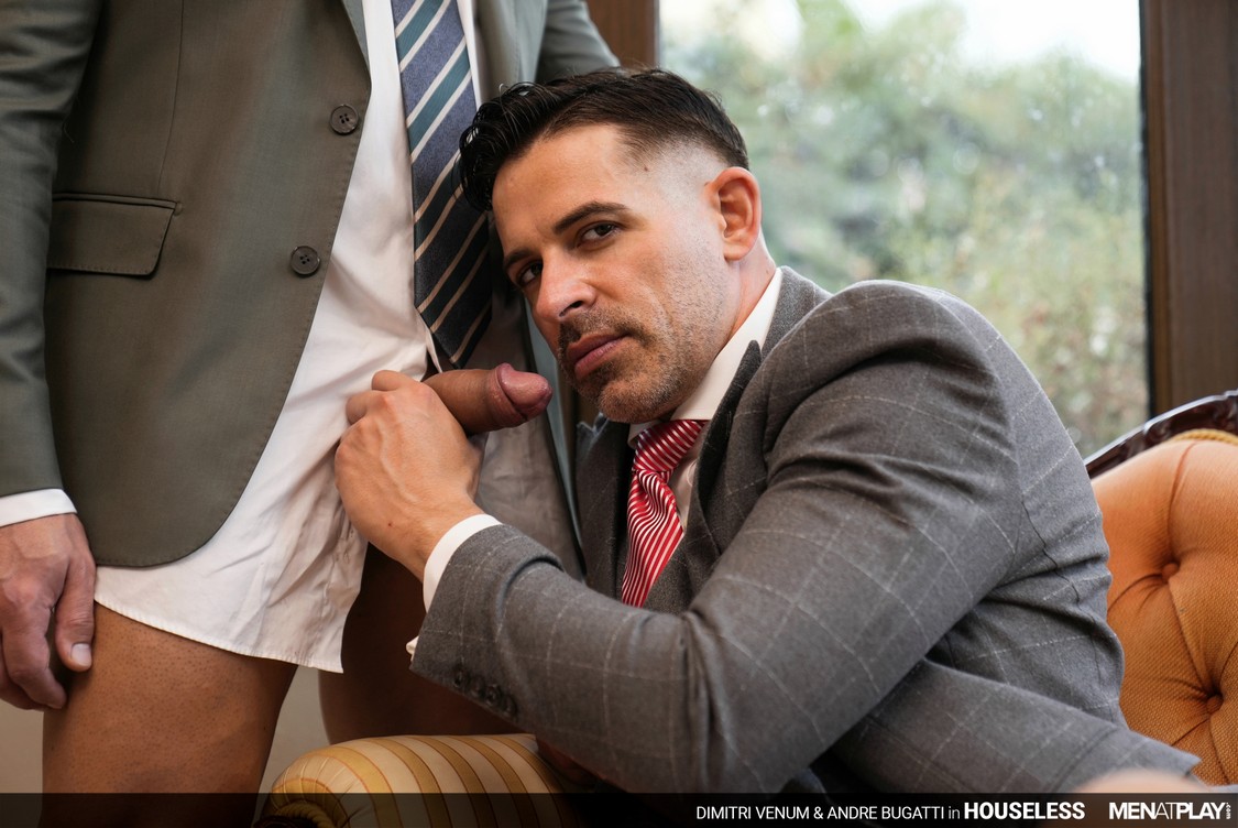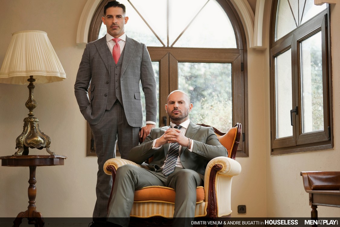 Happy New Year! Did you make any resolutions for 2026? Businessman Dimitri Venum made two goals: to be an agent of positive change this year and try to be nicer. When he arrives home after work, he finds a houseless man outside sleeping. At first, he tells the man that he can’t stay here, but then remembers his New Year’s resolution. Dimitri notices that the man seems cold and invites him inside to warm up and take a shower. Inside, he offers the houseless man some clothes to wear after he showers. Once suited up, Dimitri notices that the suit fits Andre perfectly, as he stares at the handsome stud. It has been a long time since anyone has looked at Andre the way Dimitri does – and while his circumstances may not be good, he remembers the passion two men playing can create. They begin with a kiss, which leads to mutual cock sucking, ass rimming, and a raw pounding until both studs cum in pleasure. Will Dimitri ask Andre to stay?