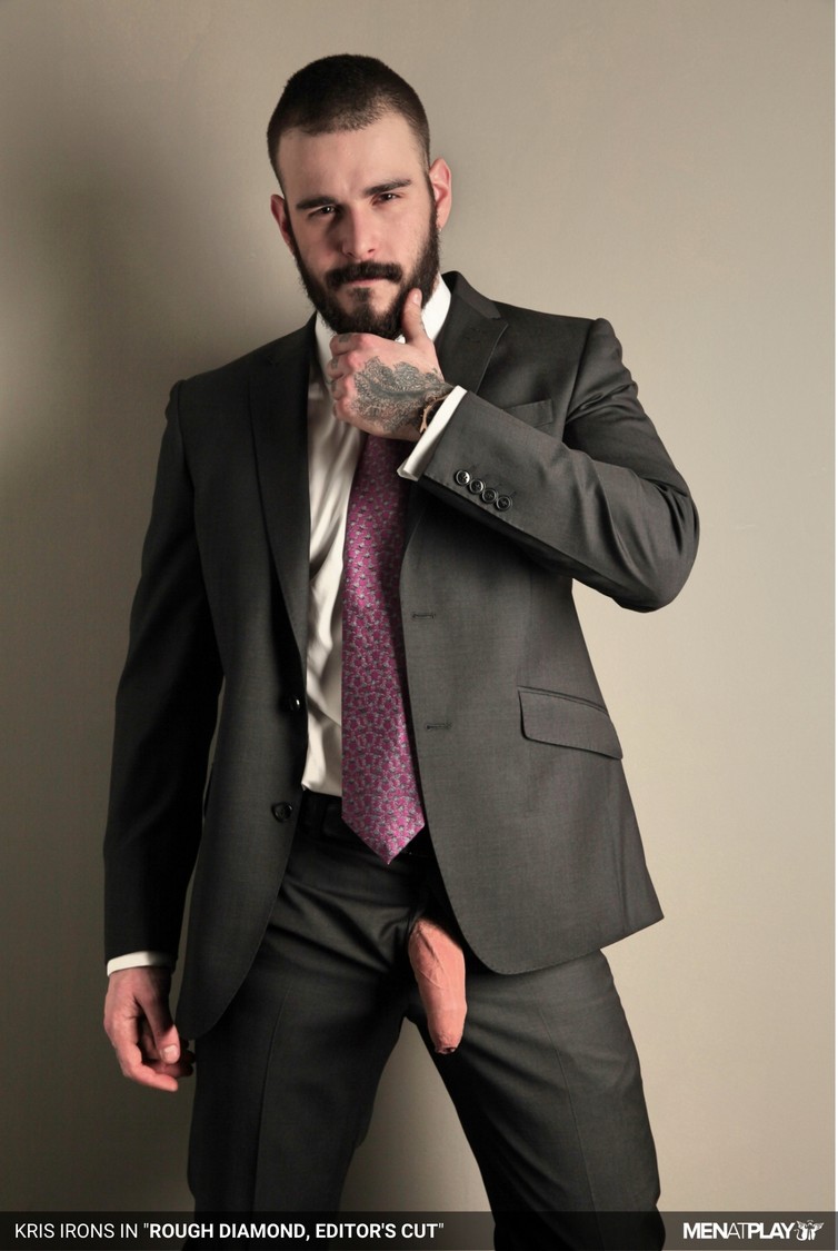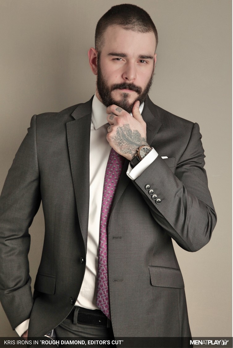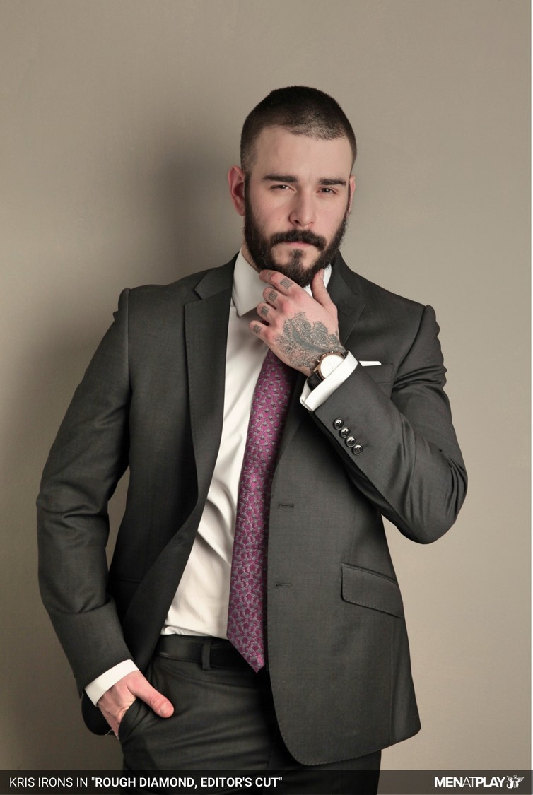 Do you like your men a little raw — the kind who wear their masculinity with a touch of fur and ink? Kris Irons is that kind of man: young, rugged, and irresistibly masculine. On a plumbing job, Kris is hard at work fixing a bathroom in a client’s apartment. Dust clings to his skin, his shirt half-unbuttoned, his beard framing a teasing smirk as he pauses for a smoke. Then something catches his eye — a wardrobe full of sharp suits. The sight sparks a fantasy. Drawn by curiosity and desire, Kris strips off his dirty work clothes and slips into one of the tailored jackets, feeling the smooth fabric against his skin. In the mirror, the rough-edged plumber has transformed into a powerful, suited man — confident, sleek, and dangerously sexy. The sight of himself like this sends a shiver down his spine, and he gives in to the heat building inside as he watches his reflection.