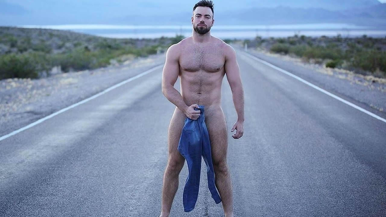 Naked Hunk in the Middle of a Road